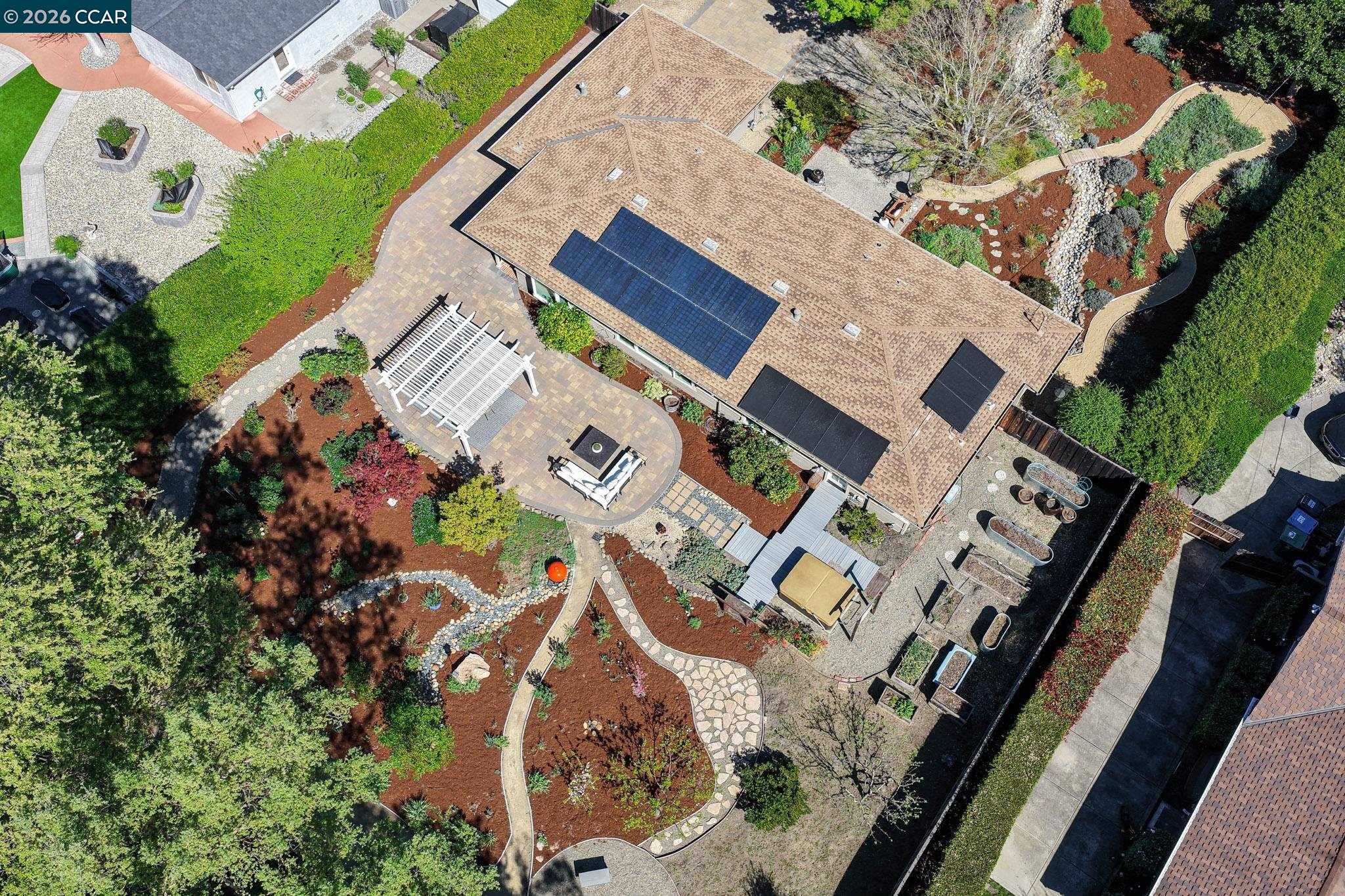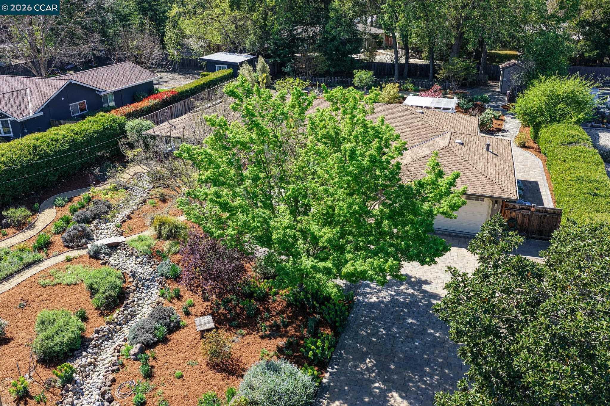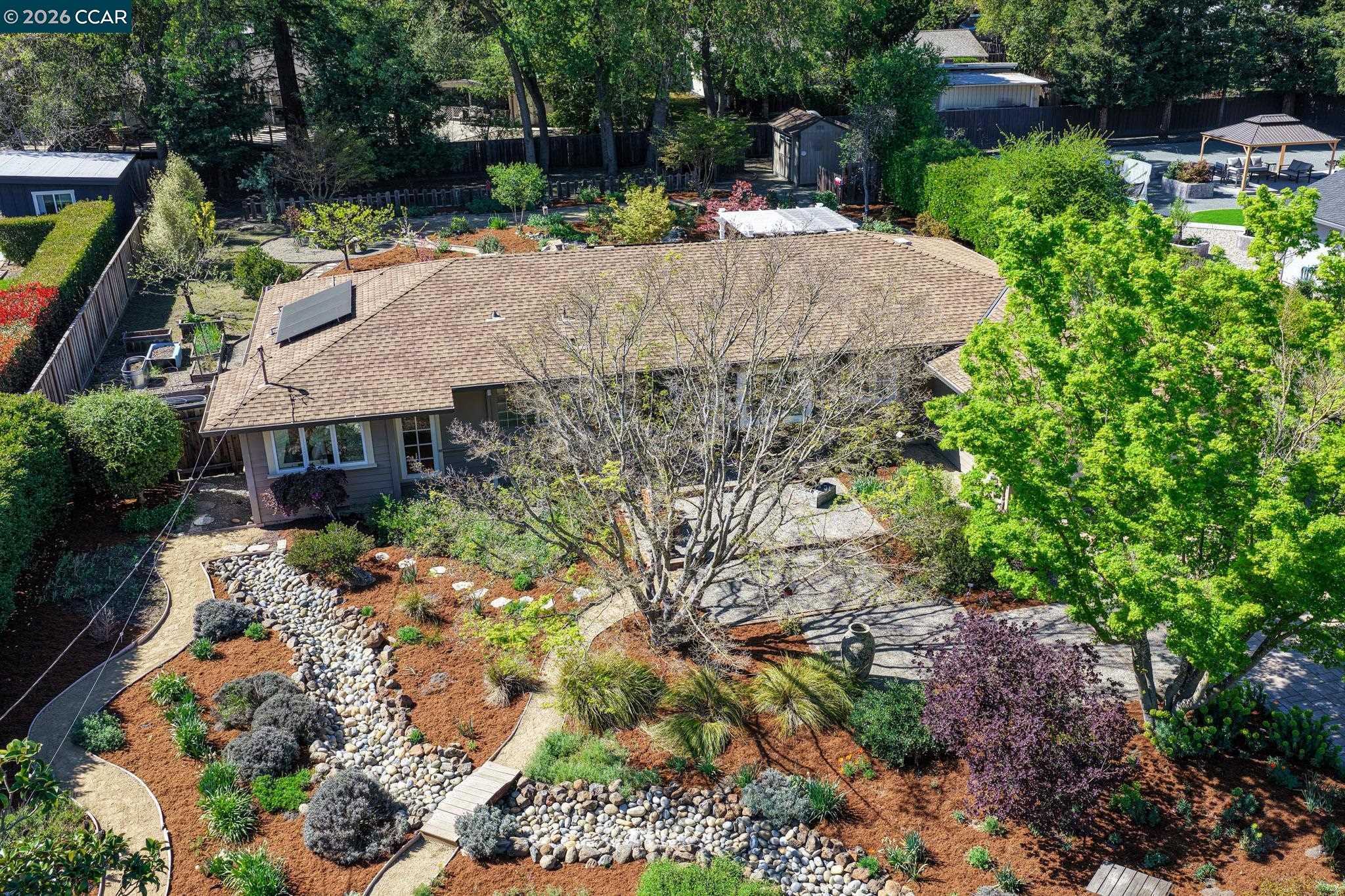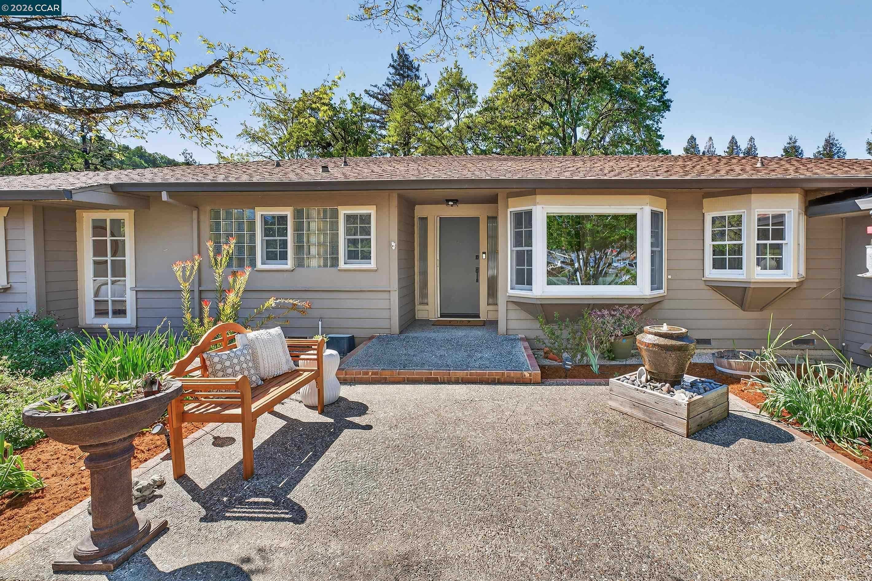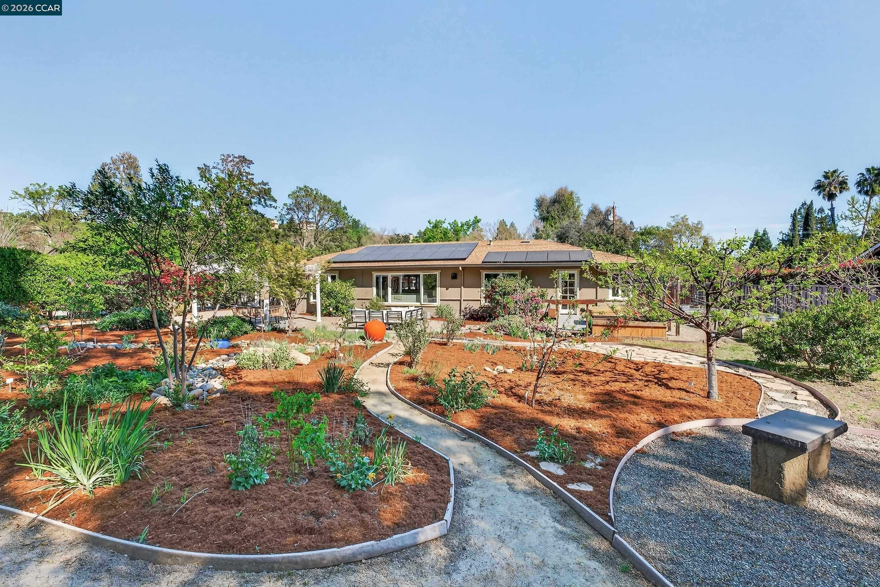 This rarely available single-story home blossoms on a flat half-acre premium botanical lot along a coveted cul-de-sac in the desirable Tice Valley neighborhood. From the moment you arrive, you understand how this home was featured on a garden-tour! The wildly contrived landscape is the very definition of curb appeal, with a backyard equally as impressive as the front. Moreover, this beautifully updated 3BD/2BA (plus office!) home offers an excellent opportunity for more bedrooms and an ADU. From the interior to exterior, the home has been thoughtfully elevated with a refreshed kitchen and bathrooms, new on-trend fixtures, lighting and hardware, new appliances, a Wolf range and newer dual-pane windows to capture the outdoor splendor. Exteriorly, enjoy the paver driveway, drip irrigation, newer fencing, newer HVAC system & attic insulation, new-epoxy covered garage floor, new sewer-lateral, drainage upgrade, the ever efficient EV charger, and, hang on to your hat here....the expanded solar panels delivering near net-zero electricity! Relish in the easy walk to the Safeway-anchored Shopping Center, Starbucks, restaurants, the Tice Valley Park & trails, while taking advantage of the highly rated schools and very accessible commute routes. This home is where the heart is!